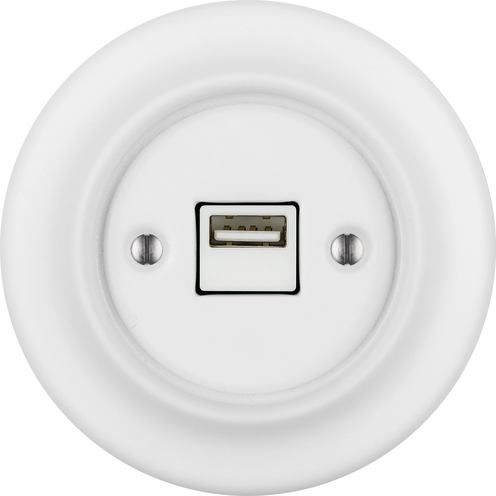 Porselen USB-lader. Med glasert overflate. Utførelse - matt hvit. Med svært slitesterk overflate og stabile farger. CE-samsvarssertifikat. Dekorativt deksel. 50 års garanti!