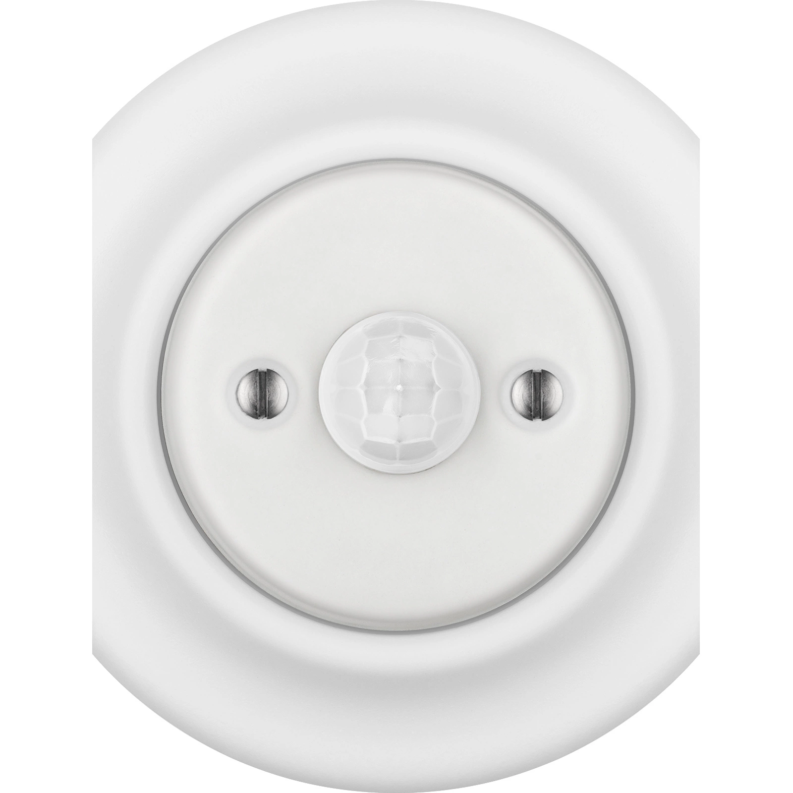 Bevegelsessensor inspirert av retrodesign og med glasert overflate. I matt ​​hvit farge. Svært slitesterkt og motstandsdyktig mot støv. CE-samsvarssertifikat. Dekorativt deksel. 50 års garanti.