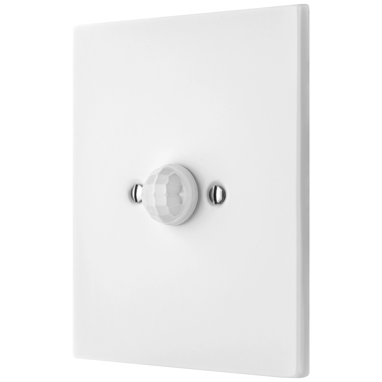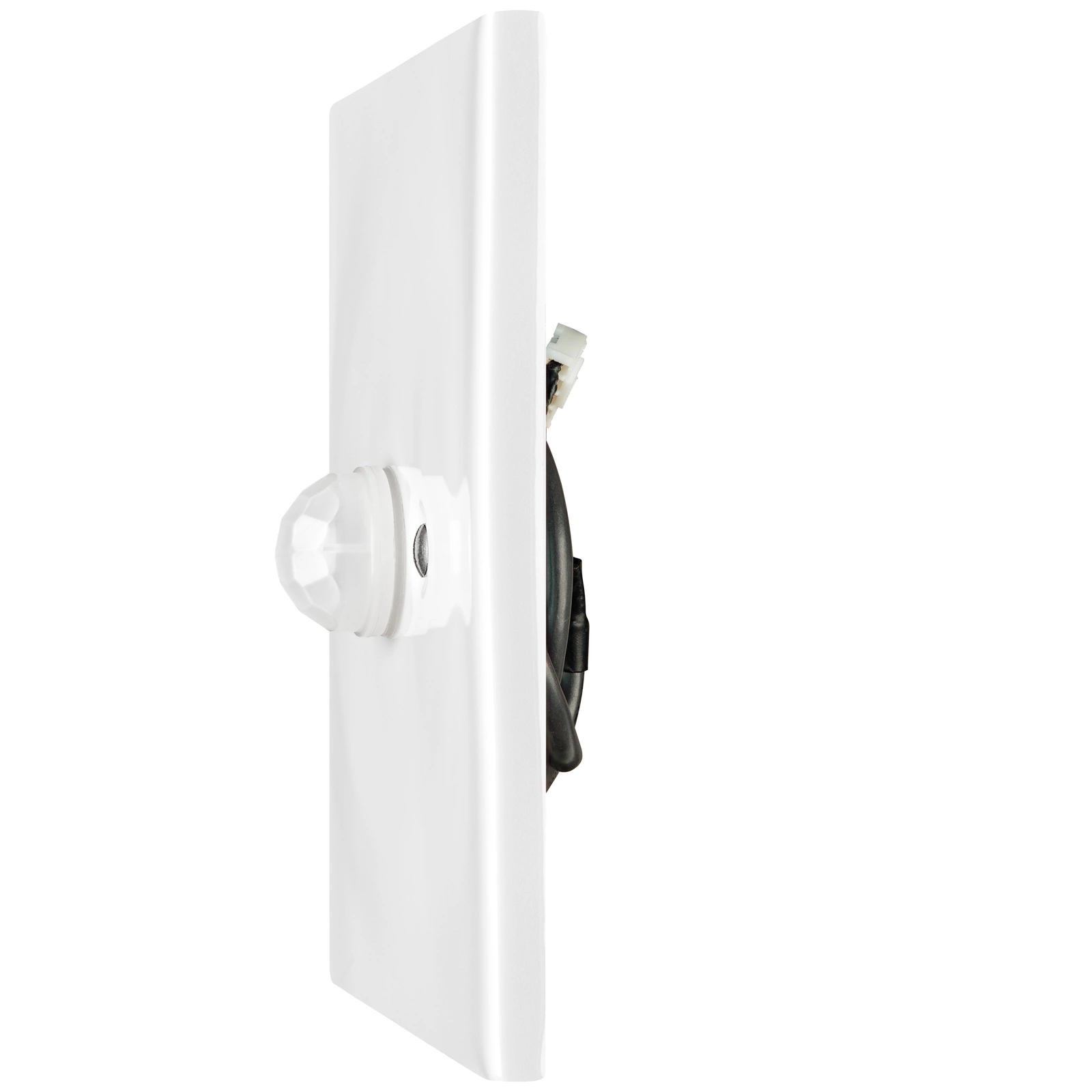 Bevegelsessensor inspirert av retrodesign og med glasert overflate. I naturlig krem hvit farge. Svært slitesterkt og motstandsdyktig mot støv. CE-samsvarssertifikat. Dekorativt deksel. 50 års garanti.